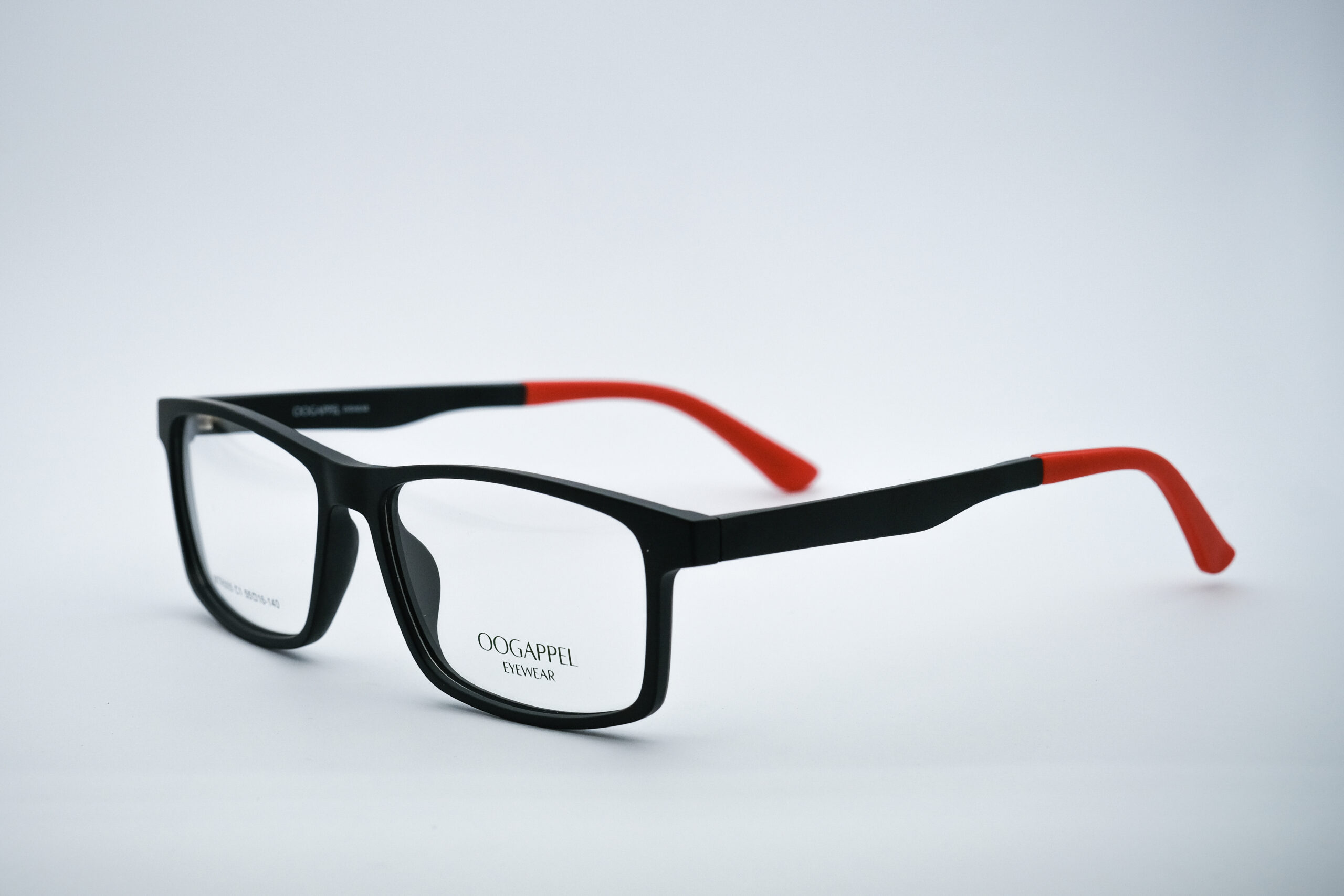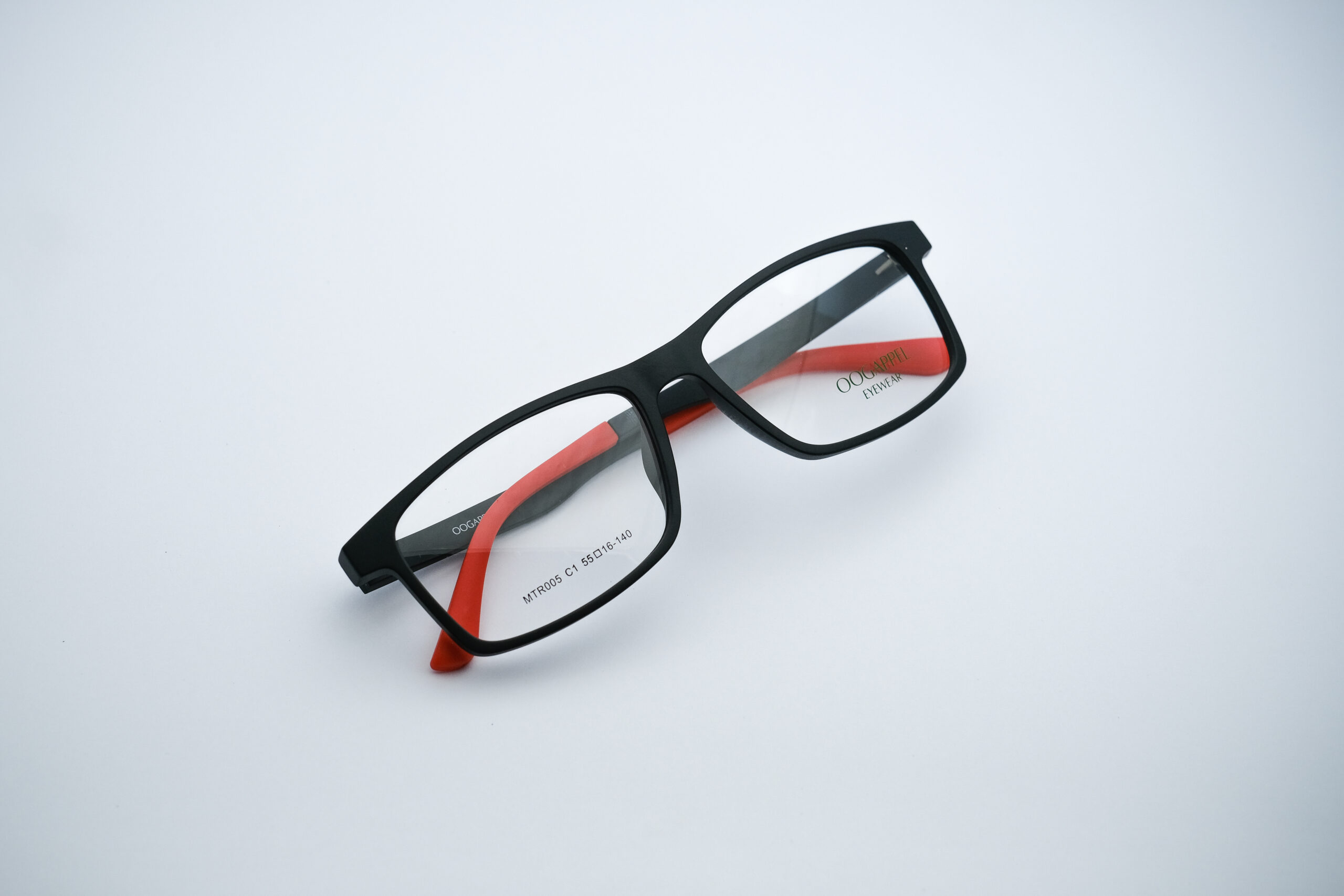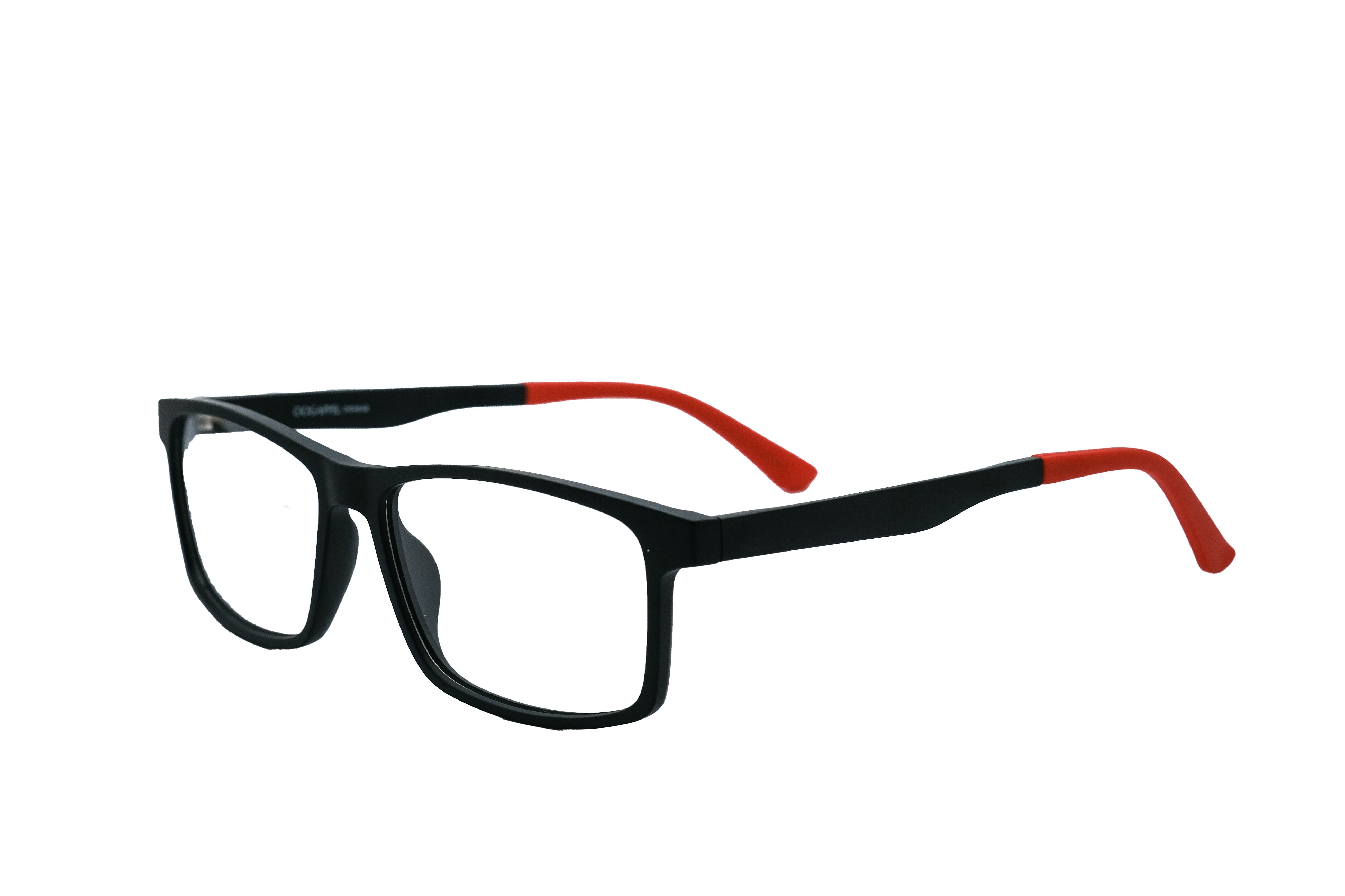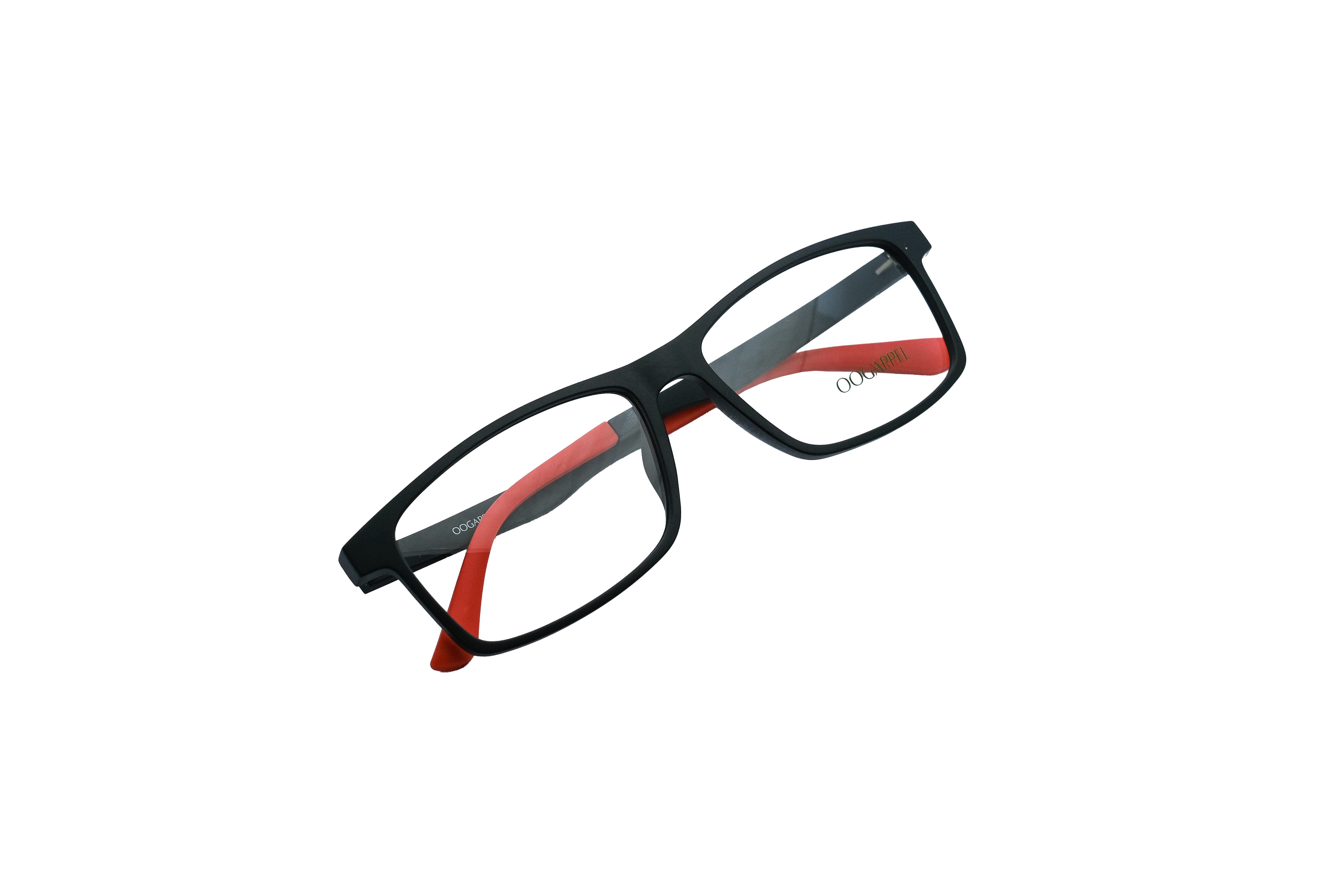 Black Square Eyeglasses with Red Tips by Oogappel
